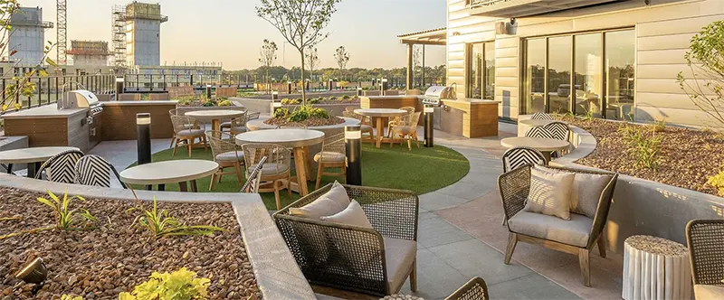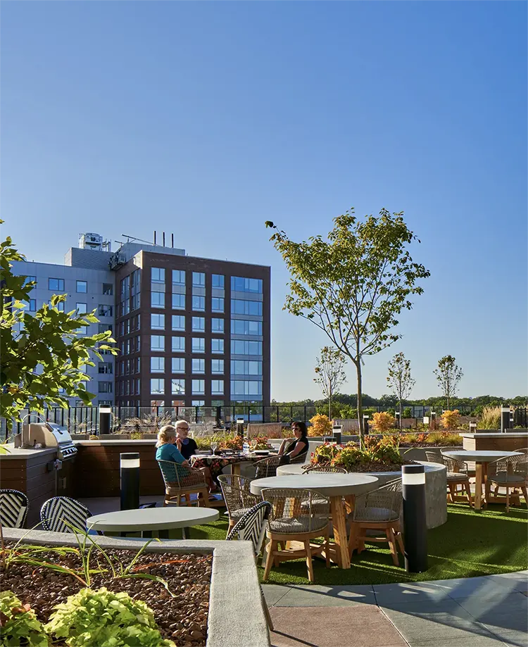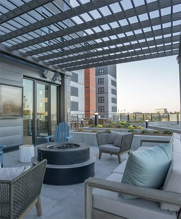 Overlooking East Lansing, our roof terrace is the perfect spot to gather with friends, family, or your neighbors. At night, watch the skyline twinkle as you sit around the fire.